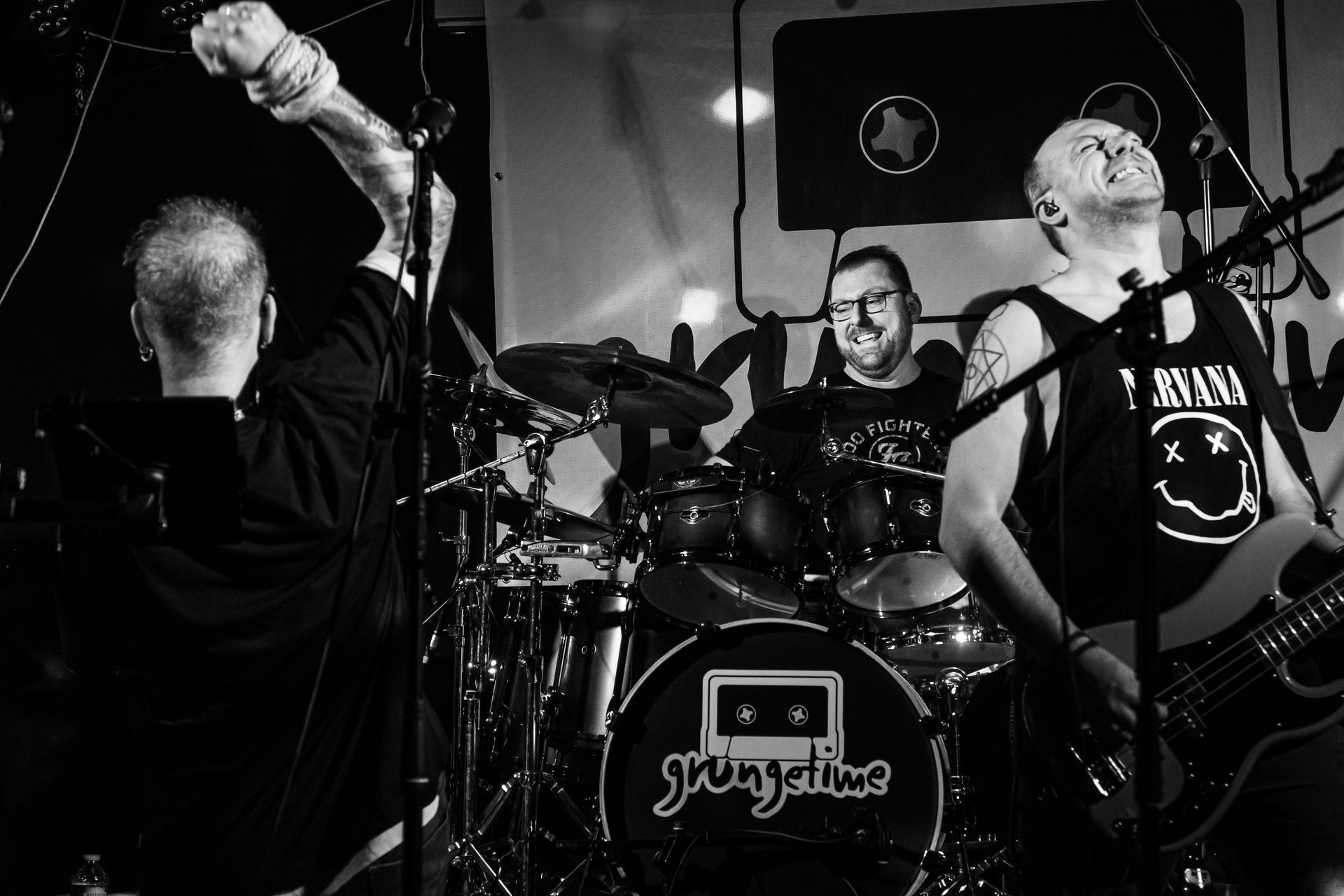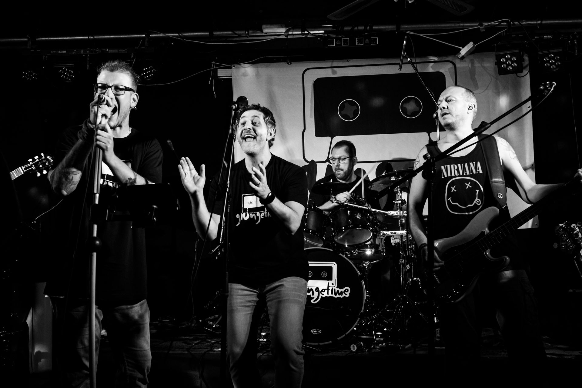 Grungetime gibt es seit dem Herbst 2018. Wir sind Andy, Marc, Matze, Marlon, Massimo und Nico und bringen den prägenden Sound der 90'er zurück auf die Bühnen. Grunge ist die Mucke unserer Wahl. Bands wie Pearl Jam, Nirvana, Soundgarden, Stone Temple Pilots oder Rage Against The Machine prägen unser Repertoire. Ergänzt mit ein bisschen Bush, Audioslave und den Foo Fighters - schon steht die 90'er Jahre Grunge-Party! Authentisch performt mit viel Energie und Hingabe. Kommt und feiert mit uns.